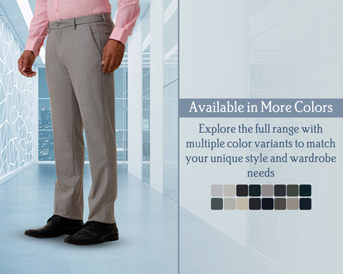 The Auto Flex Steel Bluish Gray Stretchable Formal Trouser by Ariser combines timeless style with unmatched comfort. Made from premium wrinkle-resistant fabric, it offers a sharp and polished look for any formal occasion. Its sleek smart fit design, flat front, and functional pockets ensure practicality and elegance. Perfect for office wear or special events, this versatile trouser is a must-have for the modern man.
