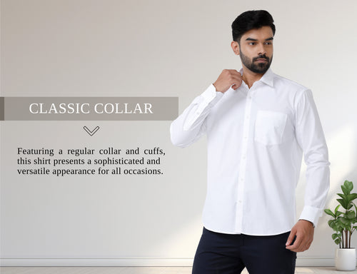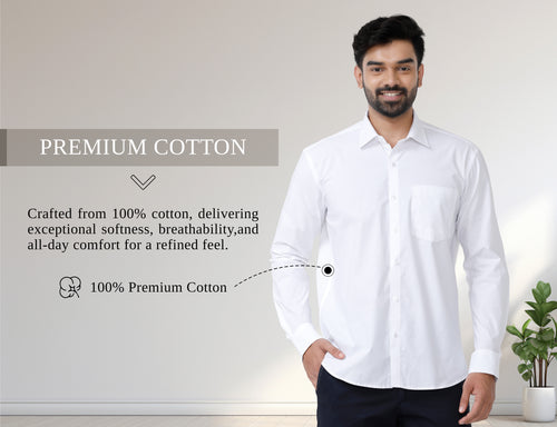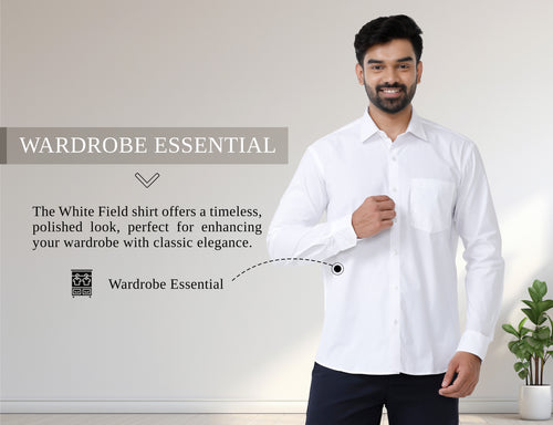 UATHAYAM White Field shirt demands a place in your fashion. A crisp white shirt is a must in your wardrobe. New look Normal Cut at the Bottom. Crafted with 100% cotton fabric, with regular collar & cuffs. Available in Half and full Sleeves