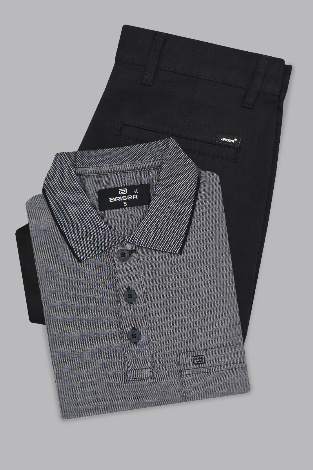 The Golf Polo + Basic Chino Black Grey T-Shirt with Black Trouser Combo delivers a smart yet relaxed look, perfect for casual outings and semi-formal settings. The black grey golf polo T-shirt, made from a cotton-rich blend, offers a modern fit with a sporty, stylish appeal and all-day comfort. Paired with the black monaco cotton trouser, designed for durability and ease of movement, this combo creates a balanced, versatile outfit ideal for office casuals, travel, or everyday wear.