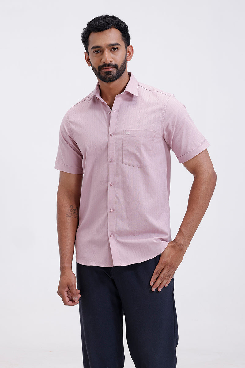 The Mexican Dobby Dusty Rose Pink Formal Shirt For Men By Ariser. offers a luxurious feel and a distinguished appearance. Crafted from premium fabric with a refined 100% Cotton dobby texture. Designed for superior comfort and an impeccable fit, it is ideal for formal occasions, business meetings, or any setting that demands a touch of class.