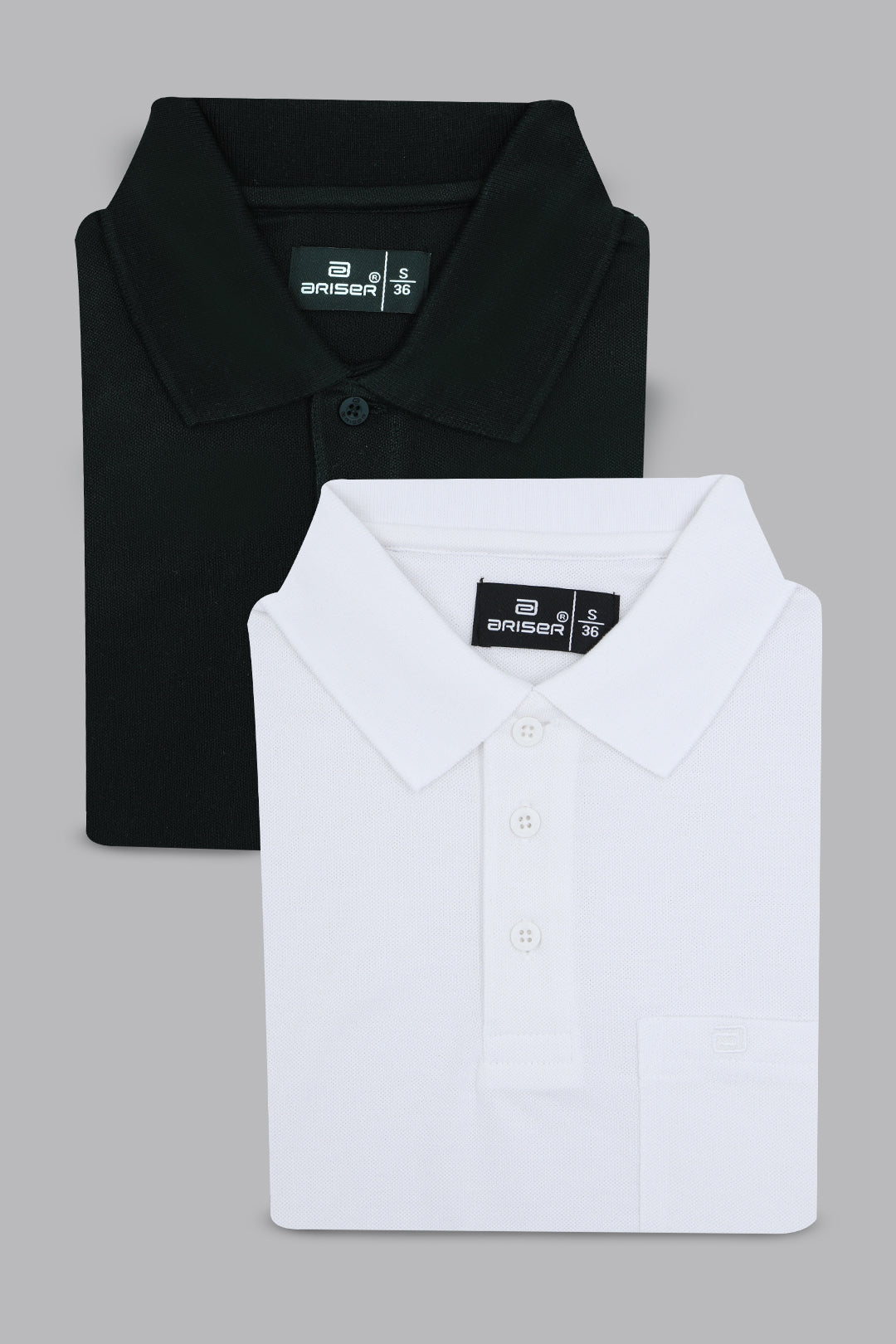 Elevate your everyday wardrobe with the Tennis Polo – Pure White and Deep Black T-Shirts Pack of 2 Combo for Men from Ariser. Crafted from premium cotton-rich fabric, these polo T-shirts deliver superior comfort, breathability, and long-lasting softness. Designed with impeccable tailoring and a refined fit, they offer a perfect balance of smart style and casual ease.