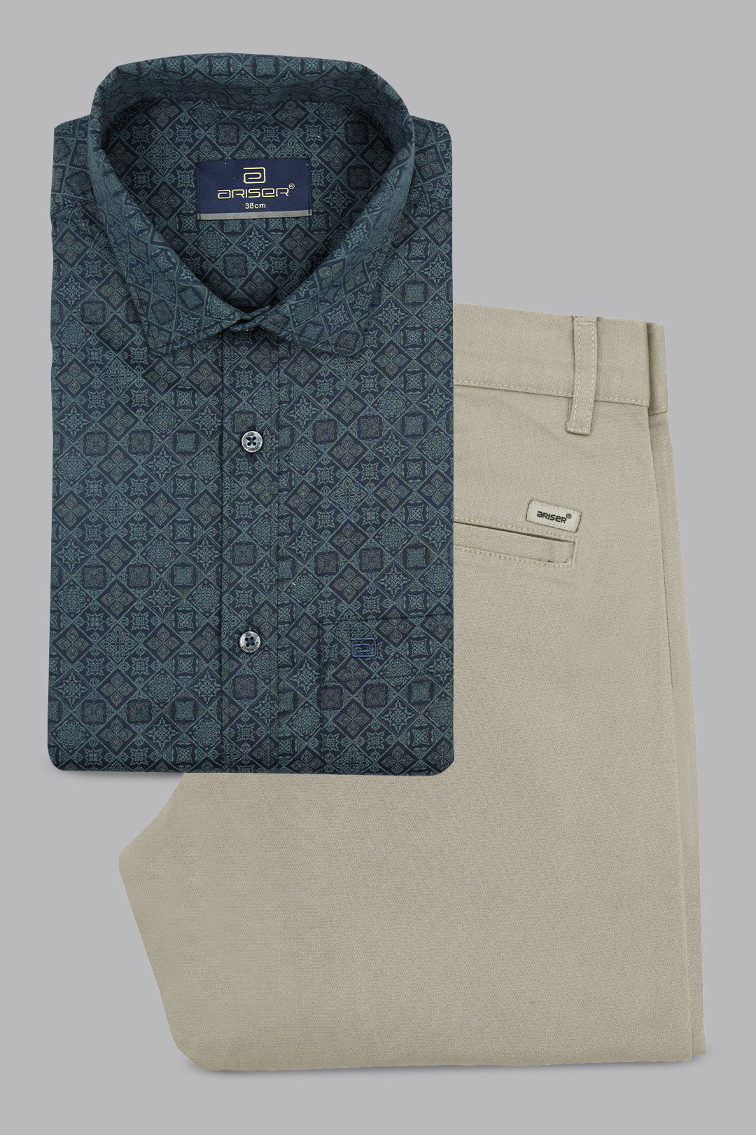 The Vudu + Monaco - Dark Teal Blue Printed Shirt With Steel Gray Trouser Combo For Men | Ariser offers a refined and contemporary look, perfect for both formal and semi-formal occasions. Expertly tailored for a modern, polished appearance, the dark teal blue printed shirt delivers a sharp and sophisticated style with a sleek finish. Paired with versatile steel gray trousers designed for superior comfort and a structured fit, this combo creates a well-balanced, elegant ensemble. Ideal for office wear, business meetings, evening events, or smart casual outings, this set ensures effortless style with lasting comfort.