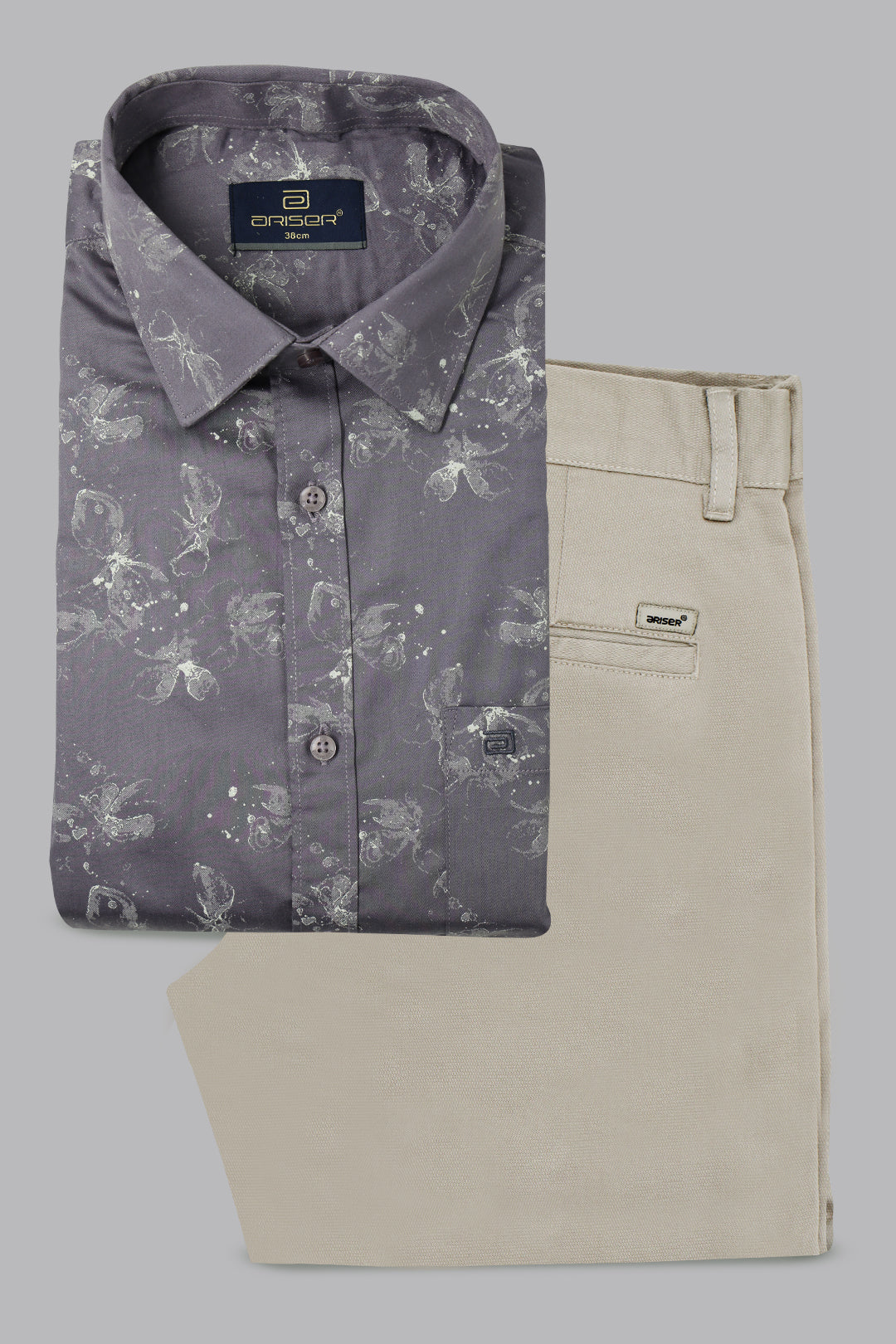 The Vudu + Monaco - Slate Gray Printed Shirt With Light Gray Trouser Combo For Men | Ariser offers a refined and contemporary look, perfect for both formal and semi-formal occasions. Expertly tailored for a modern, polished appearance, the Slate Gray printed shirt delivers a sharp, sophisticated style with a sleek finish. Paired with versatile Light Gray trousers designed for superior comfort and a structured fit, this combo creates a well-balanced, elegant ensemble. Ideal for office wear, business meetings, evening events, or smart casual outings, this set ensures effortless style with lasting comfort.