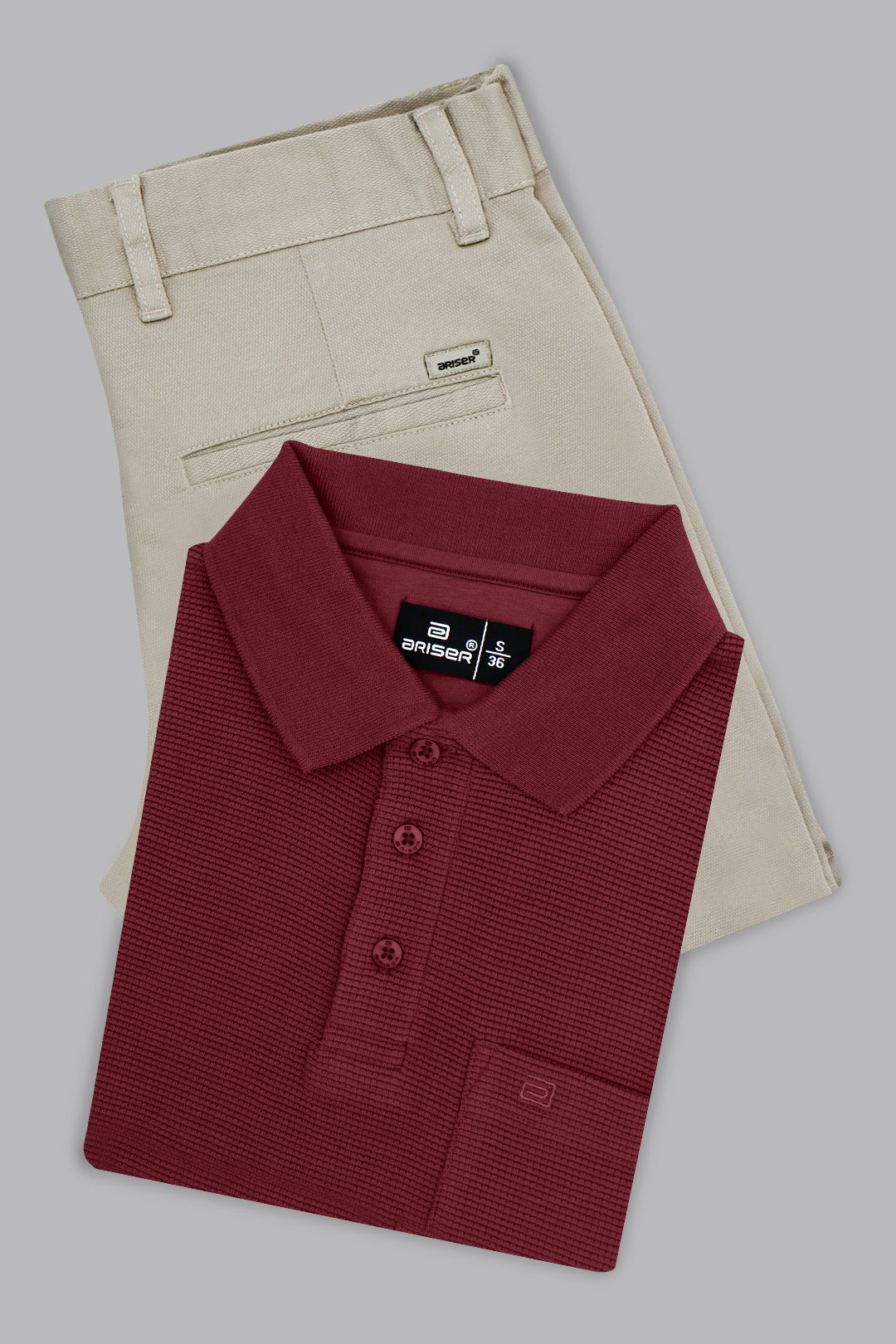 The Waffle Polo + Monaco Deep Maroon T-Shirt with Light Gray Trouser Combo delivers a smart yet relaxed look, perfect for casual outings and semi-formal settings. The deep maroon T-shirt, made from a cotton-rich blend, offers a modern fit with a sporty, stylish appeal and all-day comfort. Paired with the light gray monaco cotton trouser, designed for durability and ease of movement, this combo creates a balanced, versatile outfit ideal for office casuals, travel, or everyday wear.